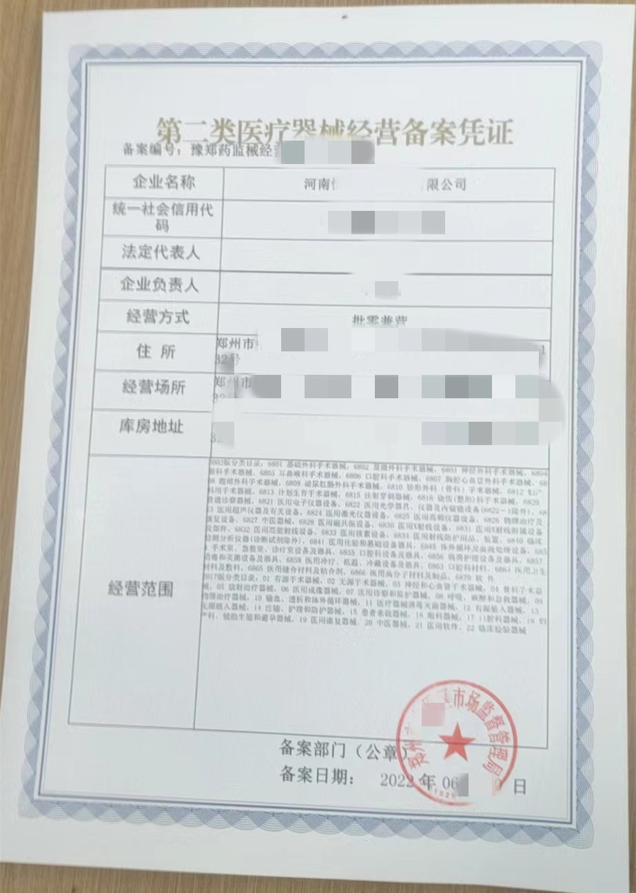 2.人员要求:提供9-10个人的身份证,毕业证原件,除法人,企业负责人外其他人要求医学类大专以上相关专业:(医疗器械、生物医学工程、机械、电子、医学、生物工程、化学、护理学、康复、检验学、计算机等专业)。