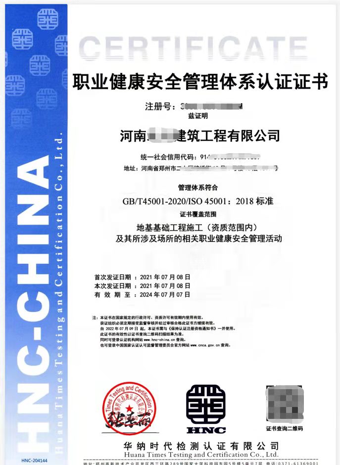 3、如系工程类企业办理本项管理体系认证,需要有建筑资质和安全许可证,且要有确定项目。